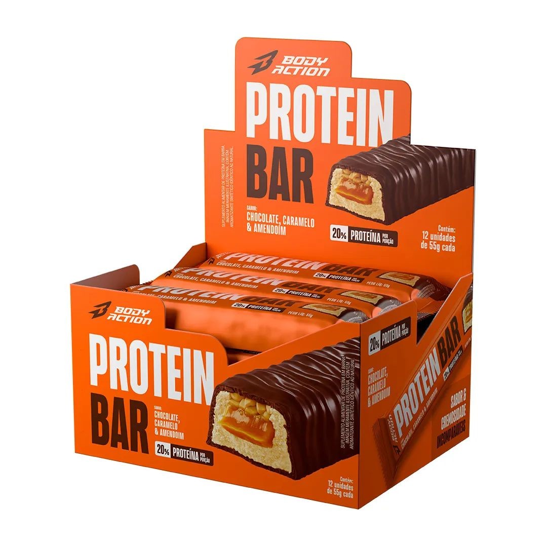 protein bar display c 12un 55g chocolate caramelo amendoim body action