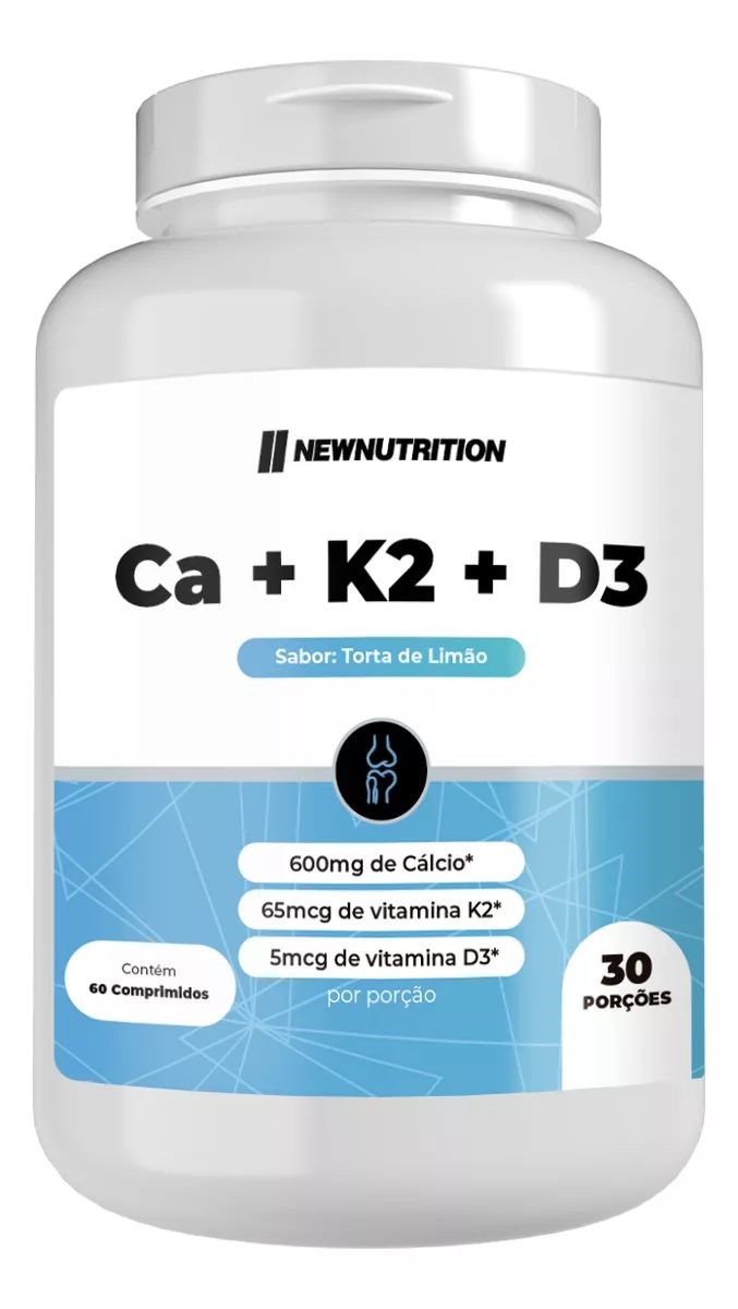 calcio + k2 + d3 - pote 60 comp mastigaveis - newnutrition