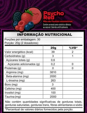 Cloridrato de L-arginina, maltodextrina, beta-alanina, taurina, cafeína,