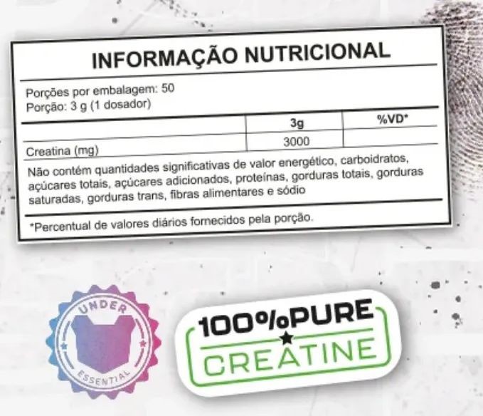 Ingredientes: Creatina monohidratada. NÃO CONTÉM GLÚTEN.