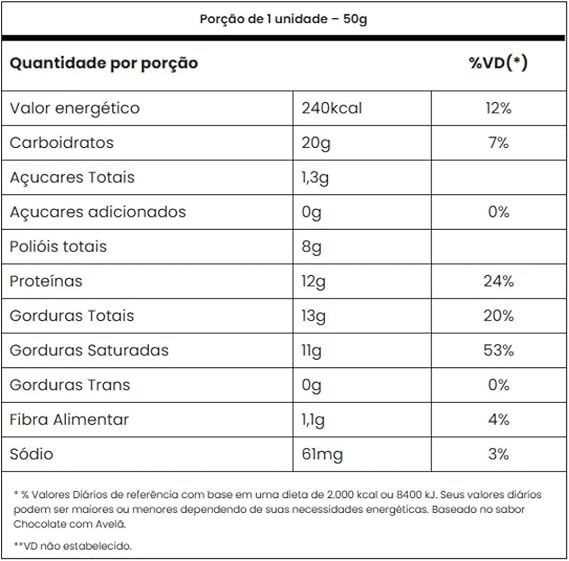 Sugestão de uso: Consumir uma unidade (50g) sempre que desejar um lanche nutritivo, como pré-treino, pós-treino ou entre as refeições.