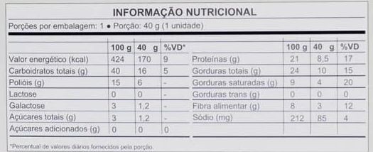 Sugestão de uso: Devido ao seu formato individual de 40g, é perfeito para um lanche rápido a qualquer momento, seja no trabalho, na escola, na academia ou em trânsito, ajudando a saciar a fome de forma prática.