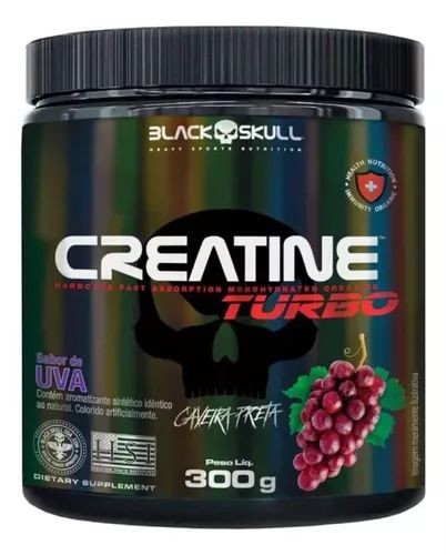 creatine turbo new - caveira preta - pote 300g - black skull