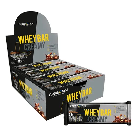 whey bar creamy - display c/ 12und 38g - amendoim c/ caramelo - probiotica