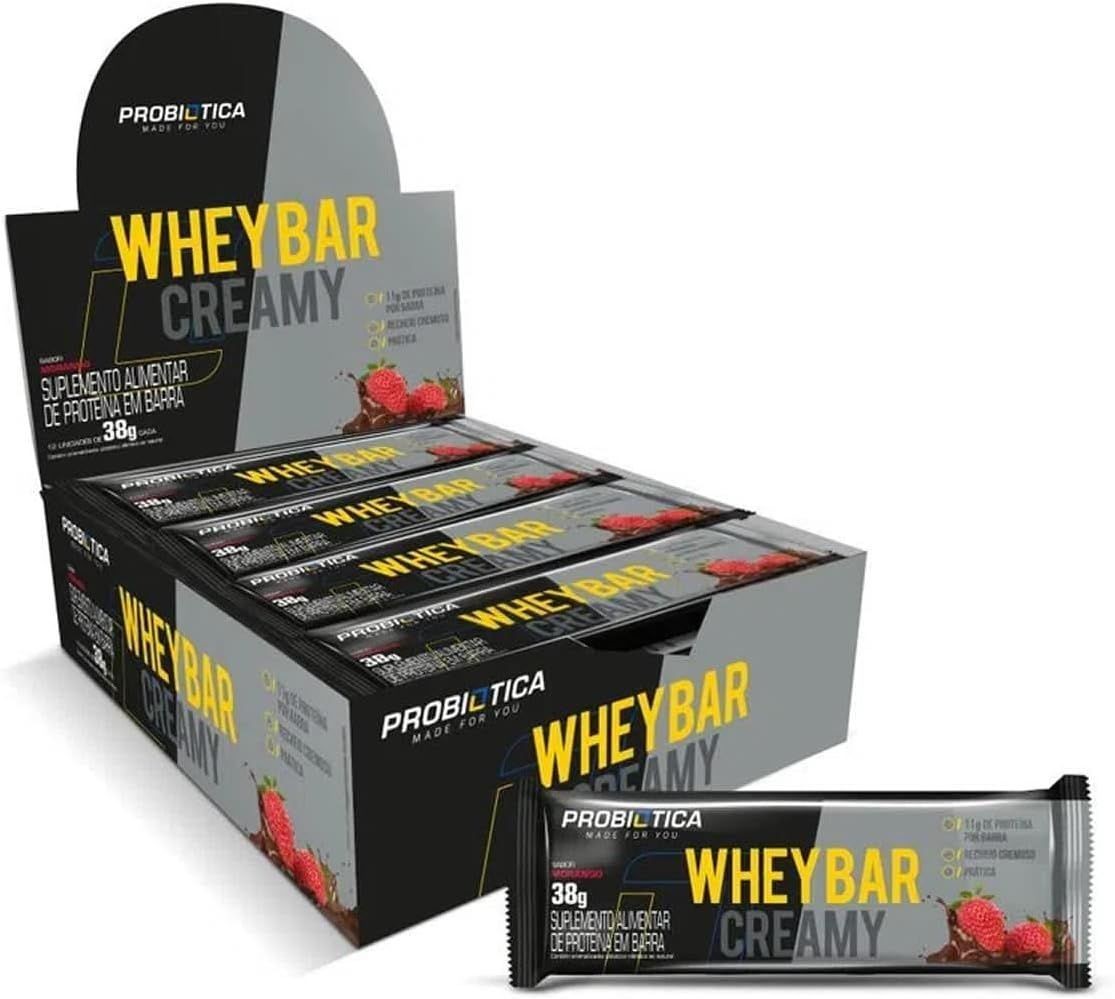 whey bar creamy - display c/ 12und 38g - morango- probiótica
