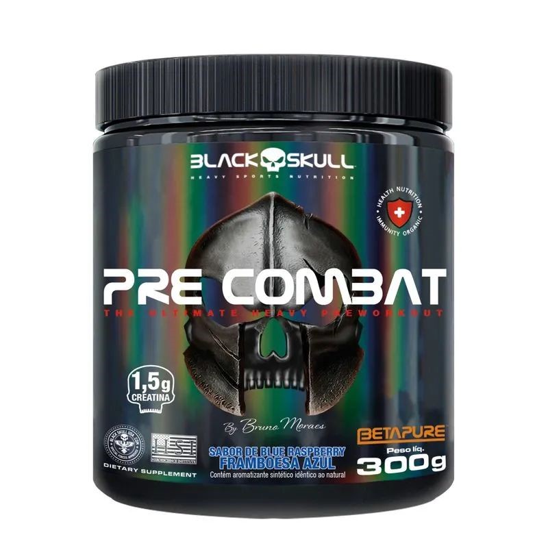 pre combat bruno moraes - pote 300g - blue raspberry - black skull