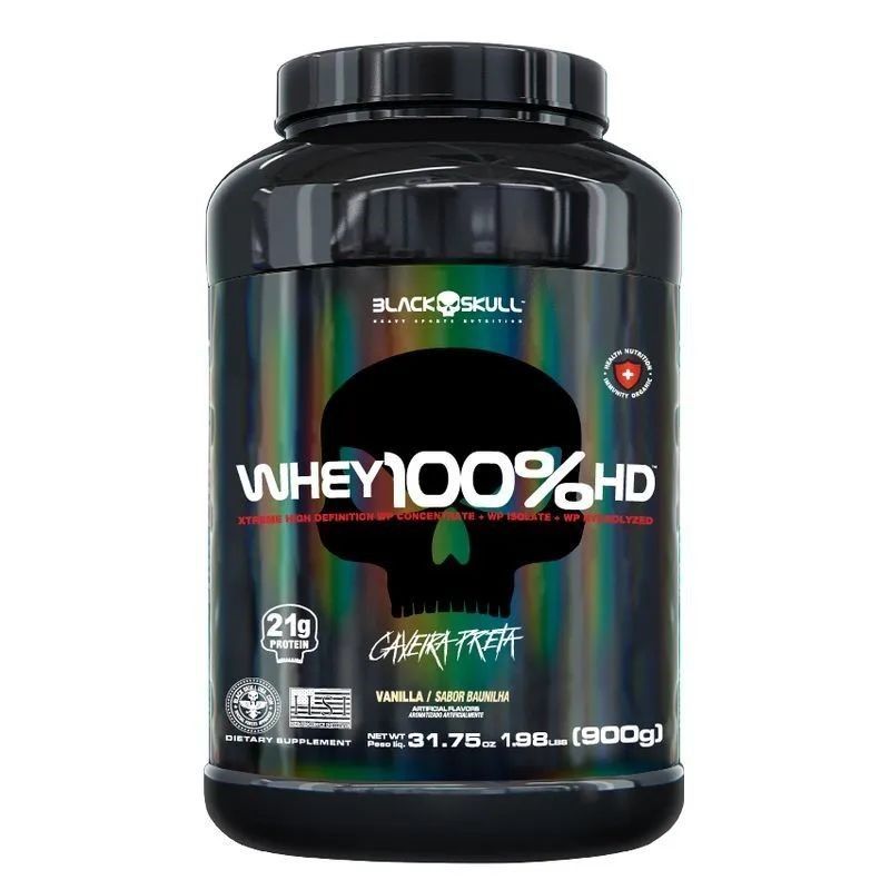 whey 100% hd gourmet - pote 900g - sorvete de baunilha - black skull