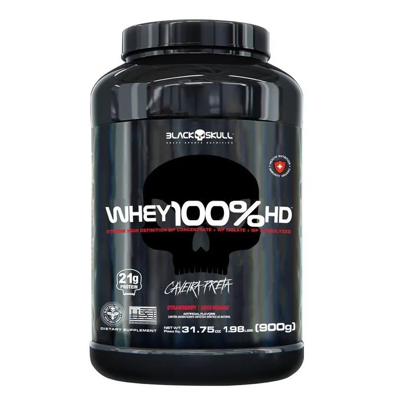 whey 100% hd gourmet - pote 900g - sorvete de morango - black skull