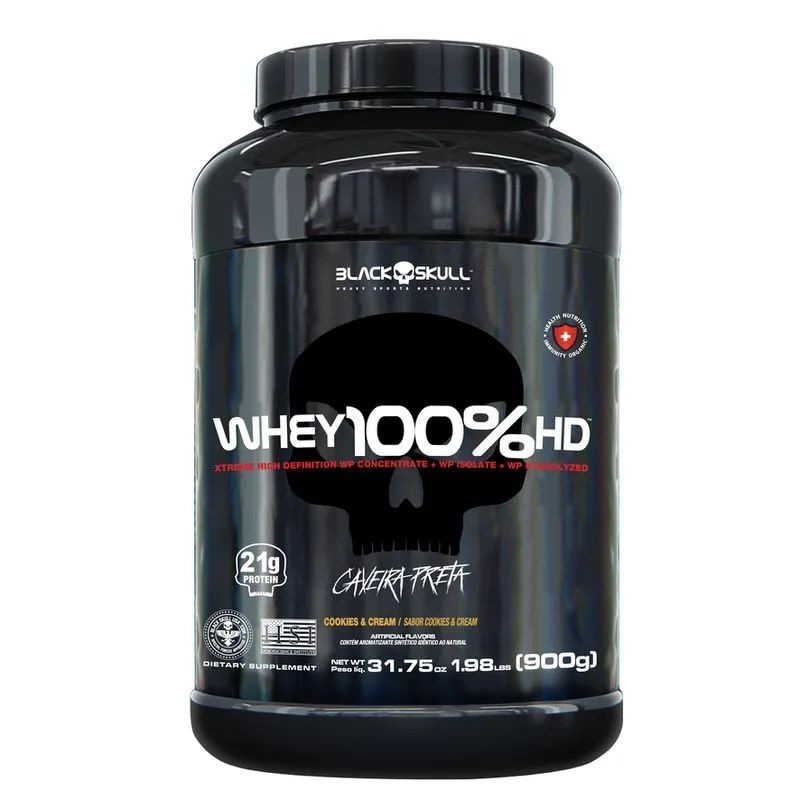 whey 100% hd - pote 900g - cookies & cream - black skull