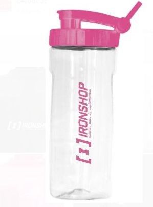 coqueteleira 400ml - transparente tampa rosa - ironshop