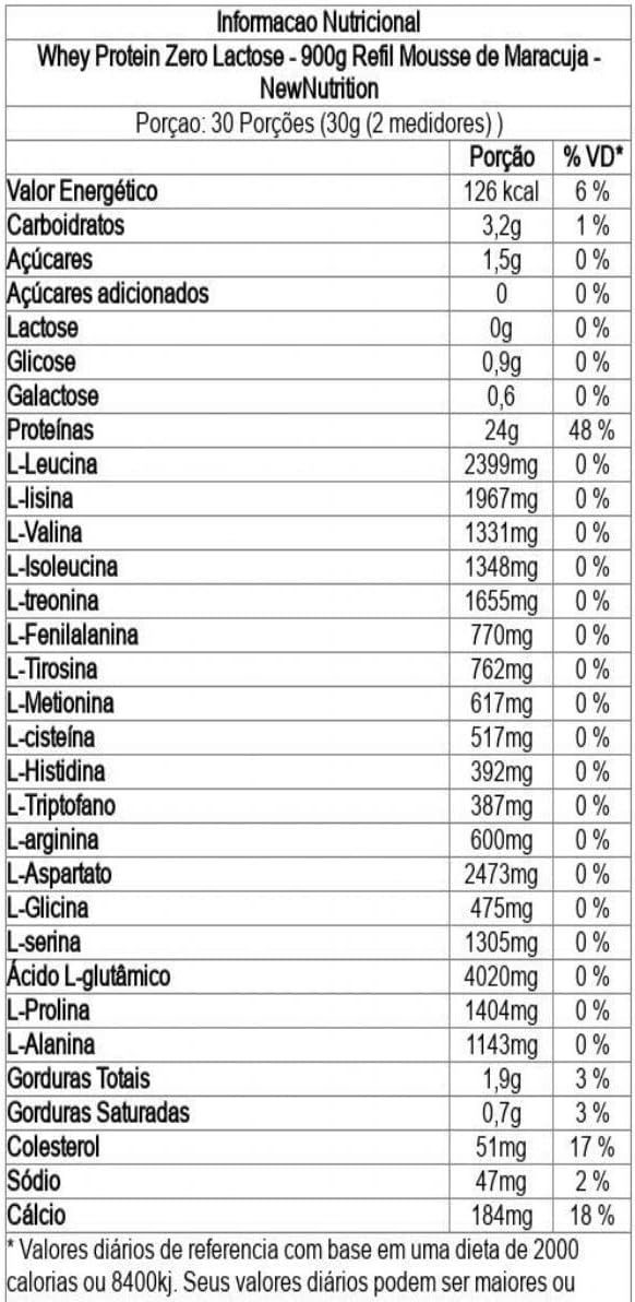 Sugestão de uso: Porção: 30g (2 medidores NewNutrition).