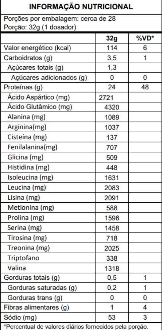 Modo de preparo: Misture uma dose de 32g (aproximadamente 2 scoops) com cerca de 200ml a 300ml de água ou leite.