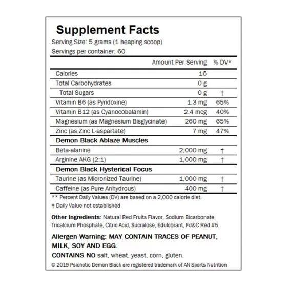PSICHOTIC apresenta ingredientes poderosos de construção muscular (Beta-Alanina e Creatina) em doses cientificamente validadas que realmente demonstram construir mais músculos. Para aumentar a força para um melhor desempenho na academia, os pesquisadores da Demons Lab incluíram uma dose de beta alanina inspirada em pesquisas. Além disso, a dose precisa de beta alanina encontrada em dois scoops foi comprovada em pesquisas científica para aumentar o desempenho em atletas de resistência.