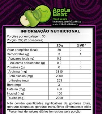 Cloridrato de L-arginina, maltodextrina, beta-alanina, taurina, cafeína,