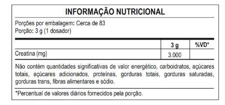 Ingredientes: Creatina monohidratada. NÃO CONTÉM GLÚTEN