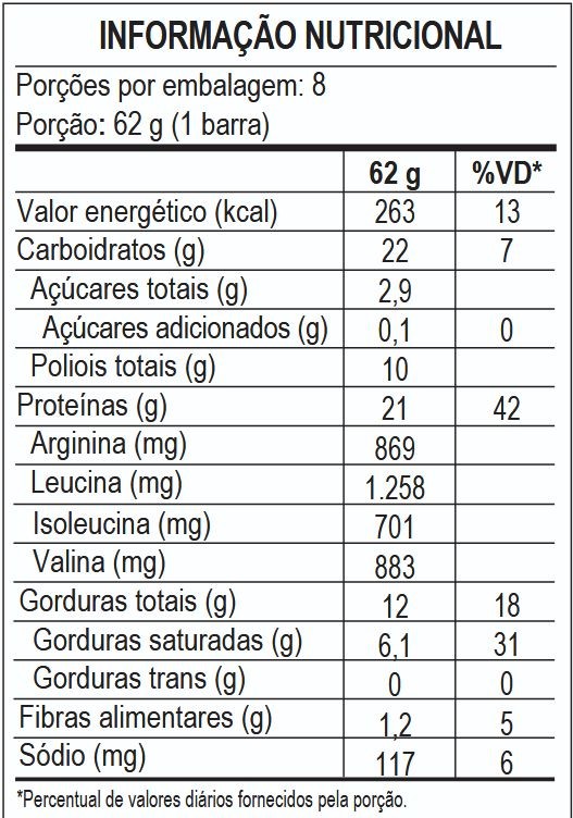 Sugestão de uso: consumir DOCTOR BAR entre as refeições e/ou como opção de pré ou
