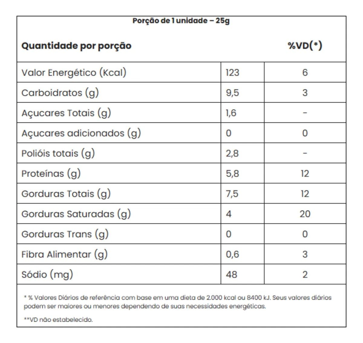 unidade (50g) sempre que desejar um lanche nutritivo, como pré-treino,